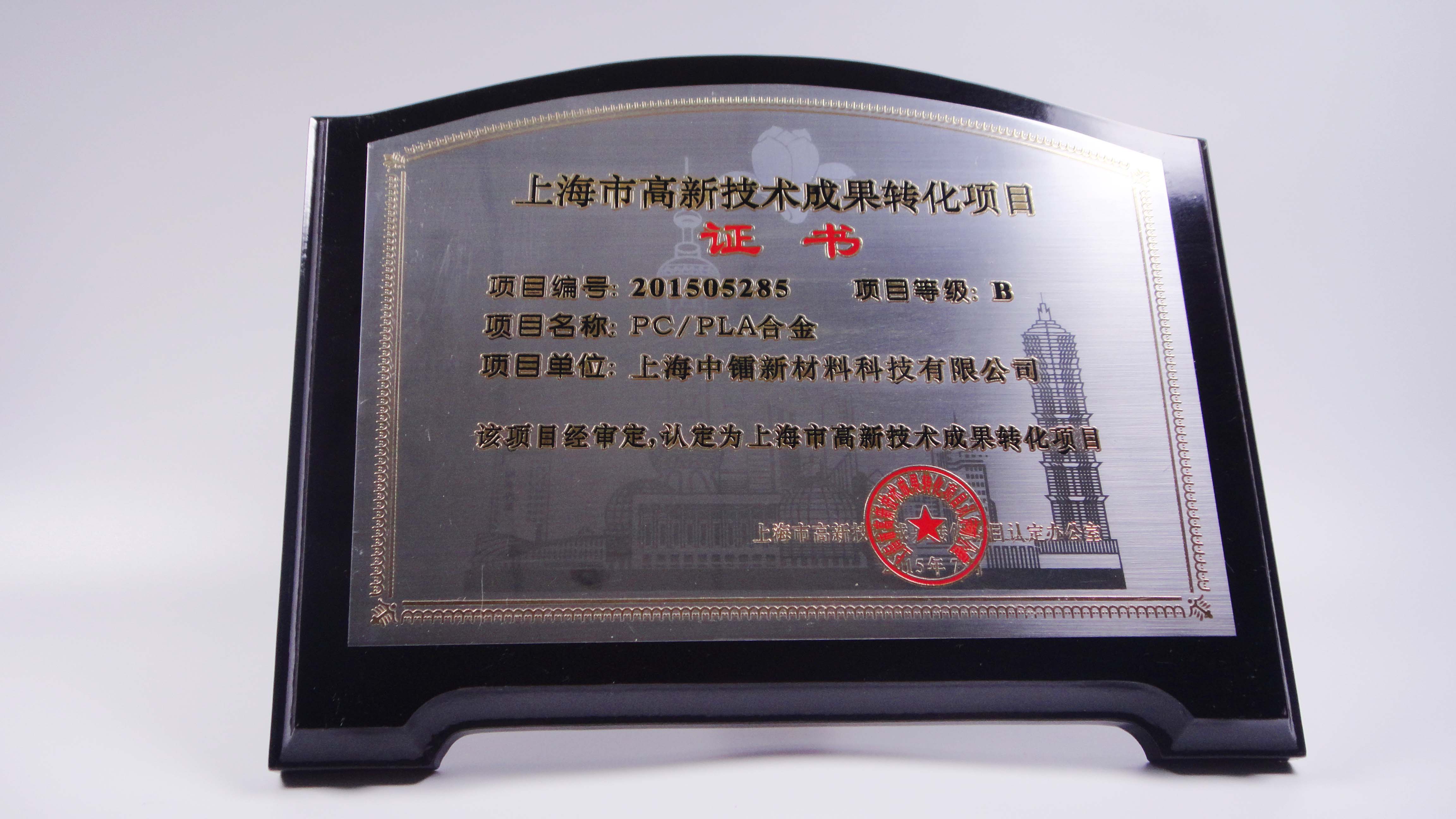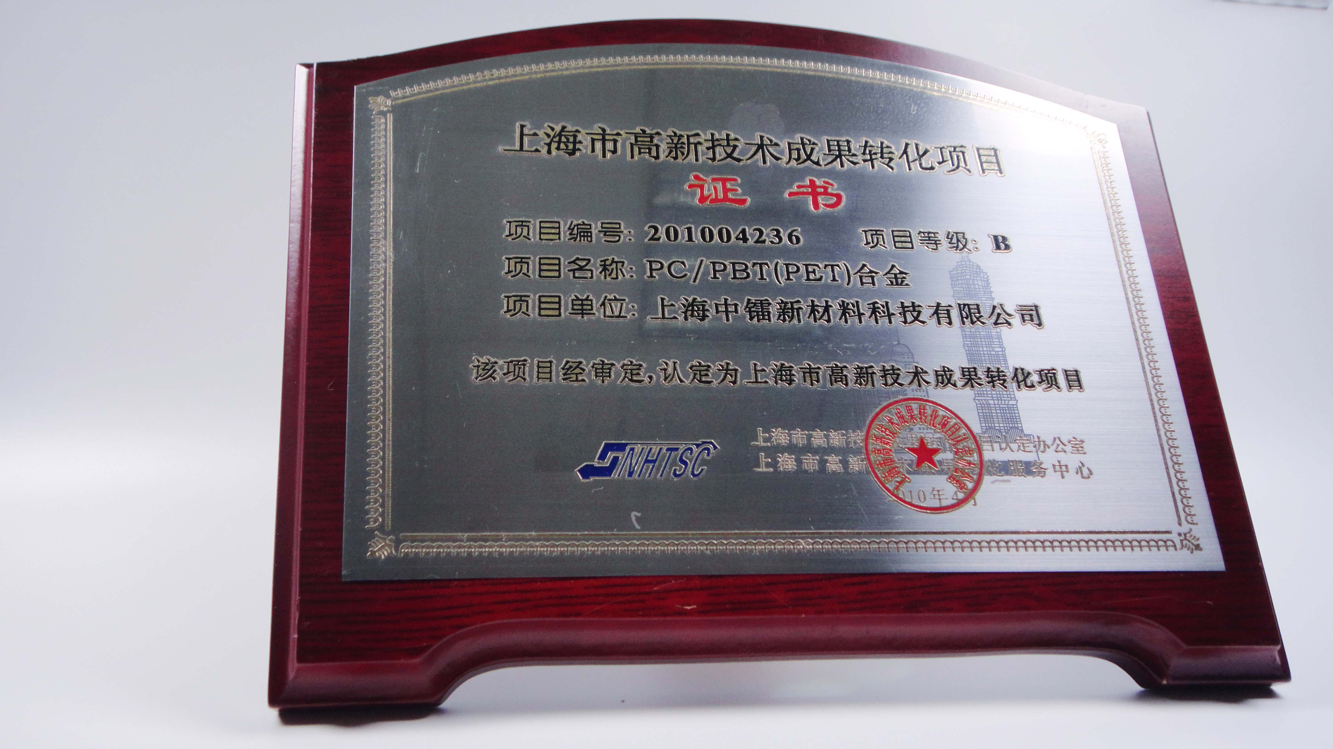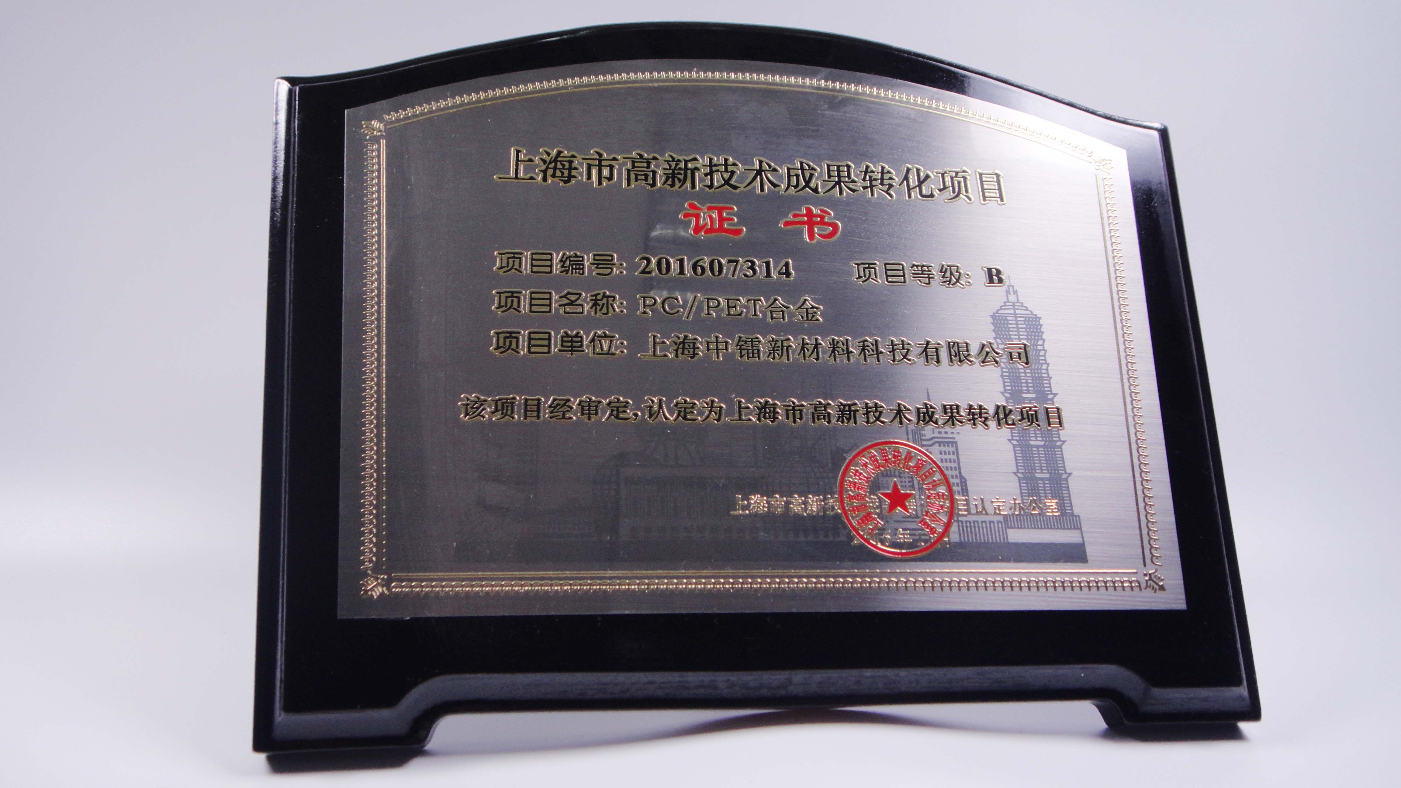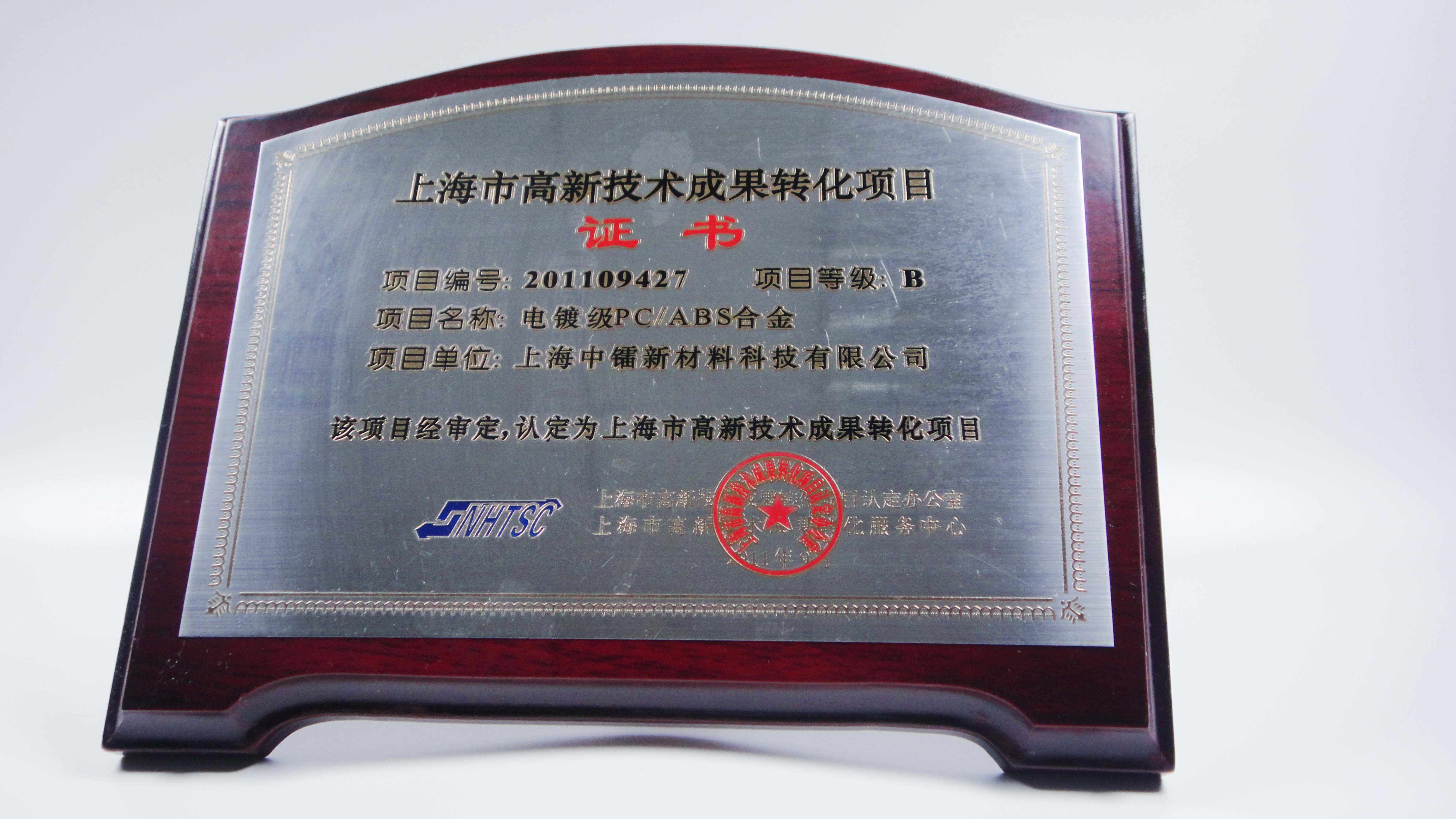 PC/PET合金成果轉(zhuǎn)化證書